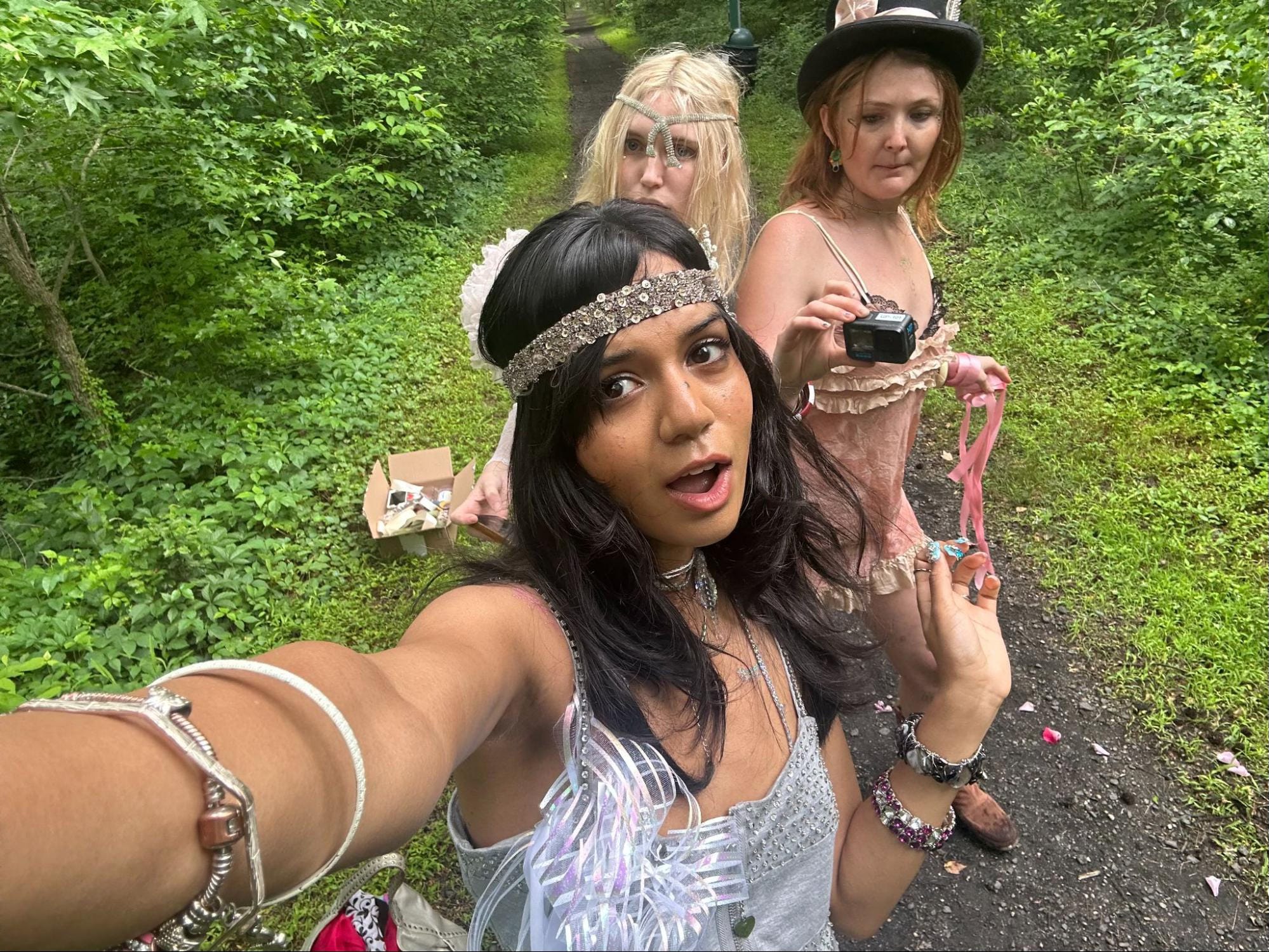 Farheen: Colorful and textured. Psychedelic and whimsical. When it comes to defining our style, we always work with our best friend and stylist Eloise Moulton; references she’s been thinking about right now include Louis Vuitton Spring/Summer 2006, Christian Lacroix Fall/Winter 1997, the over-saturated colors in proto trance/euro dance music videos, and the kaleidoscopic multi-media visuals of Madoka Magica.