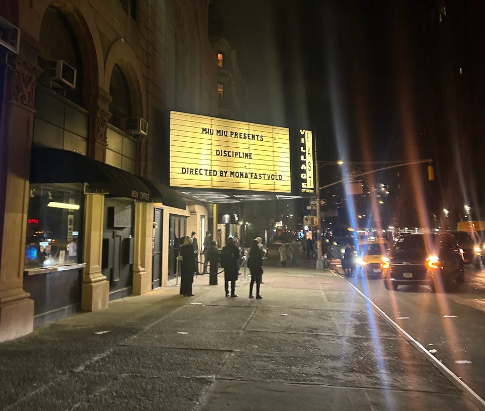 There was something in the air last night at Miu Miu’s film screening at Village East by Angelika in NYC. In the midst of running around the city for fashion week, the audience waited with bated breath for the 31st iteration of Miu Miu Women’s Tales. And director Mona Fastvold delivered with a film made specially for the series. Discipline (2026) was surreal and sharply composed, a meditation on girlhood, control, and clothing as emotional armor.