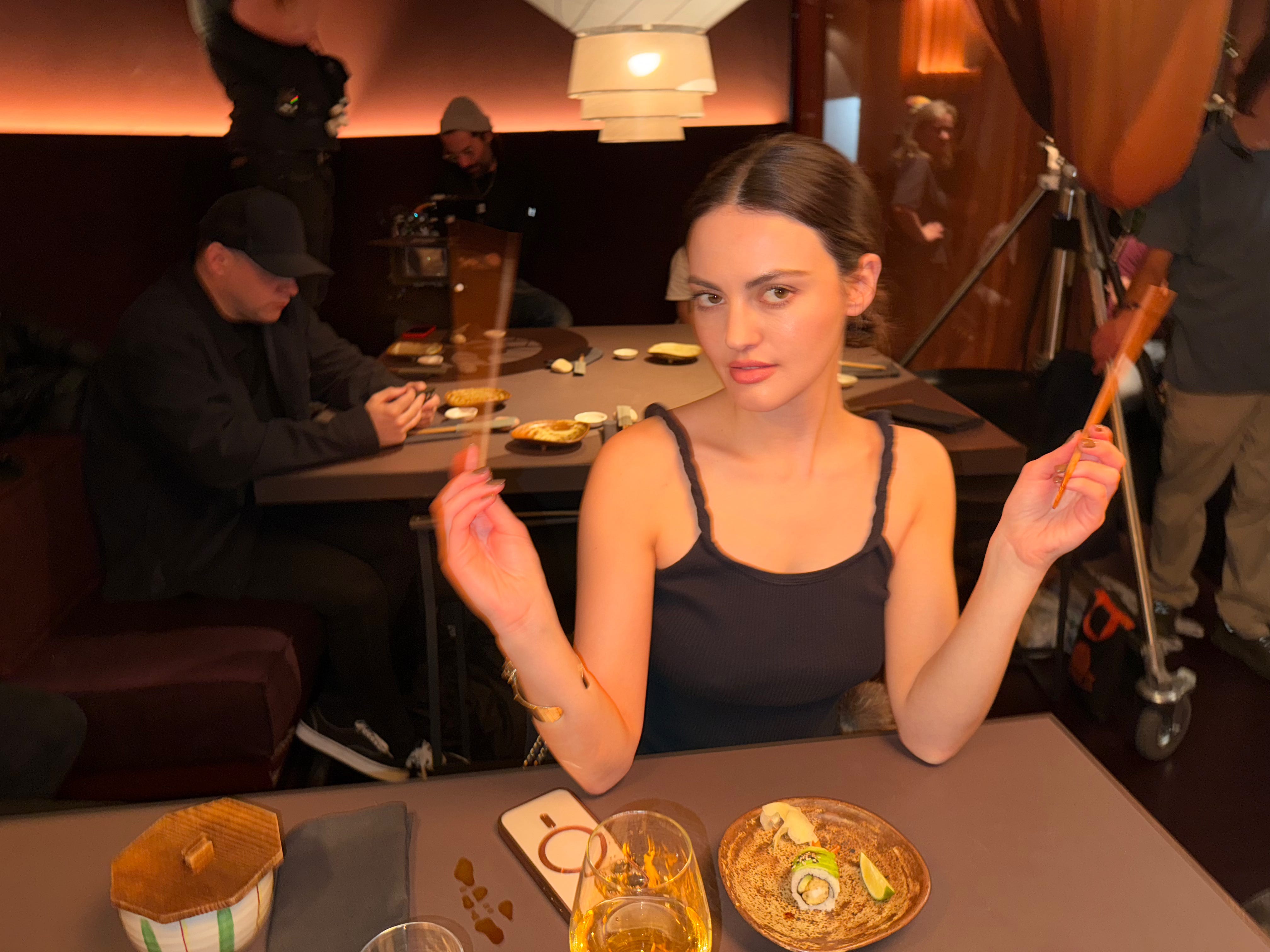 For Trew Mullen, playing Ana, Charli XCX’s control-freak assistant in Aidan Zamiri’s The Moment, meant stepping into a character who’s always one step ahead. Seeing the world through Ana’s lens made her more aware of the small rituals we use to feel steady, too. And even far from her NYC apartment, she still felt at home. “We spent a lot of time filming in cars, driving through London in the rain, and it felt oddly familiar,” she tells us. “I think most of us have looked out a window at some point and imagined the radio was scoring our lives.” Below, she takes us behind the scenes: from that one sushi scene to everything in-between.