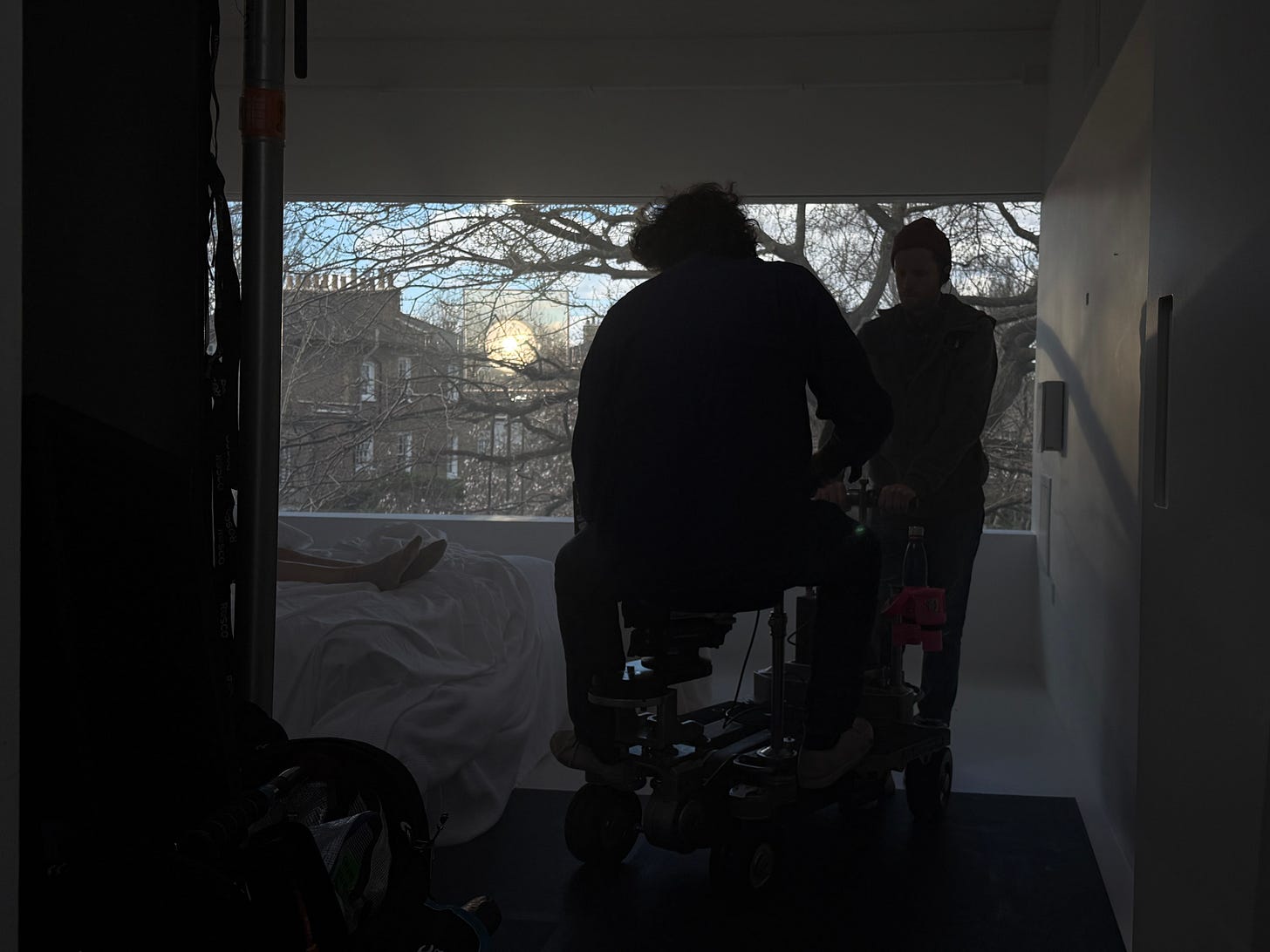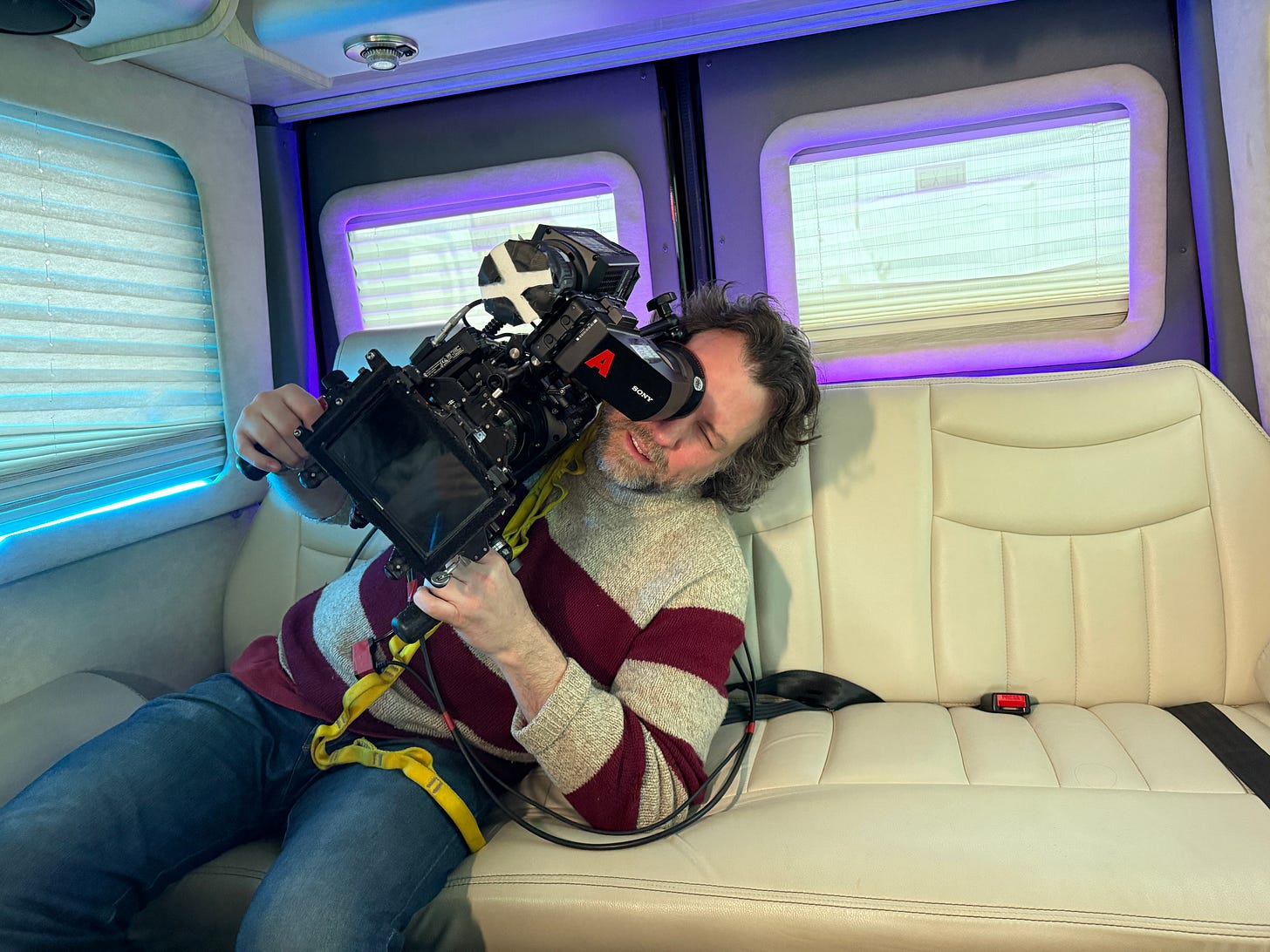 The New York–based actor takes us behind the scenes of Charli XCX’s new mockumentary. Between rain-soaked shoots and early mornings filming, no two days looked the same.